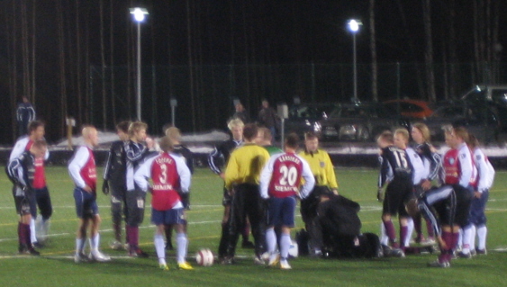 koska se häiritsi vaihtopelaajien harjoittelua. Kuitenkin pelailu jatkui ja